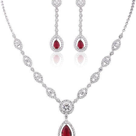 Ruby Halo Necklace and Earrings Set | White Gold
