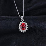 Classic Ruby Halo Necklace | White Gold