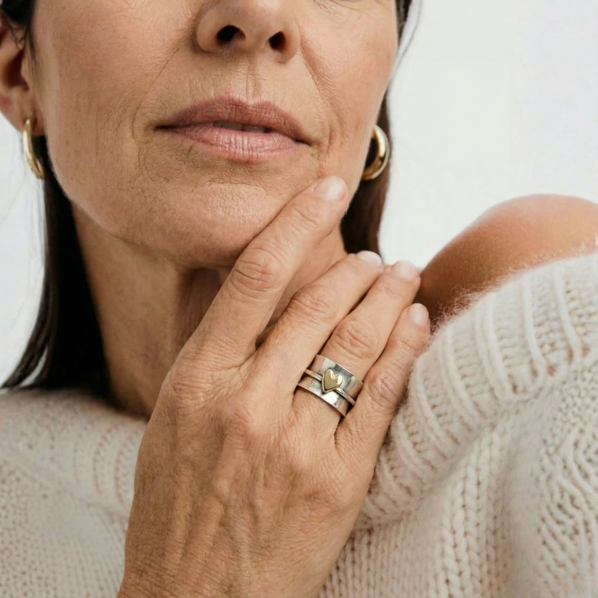 Melly - Golden Heart Silver Ring